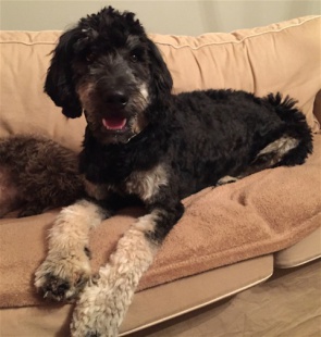 Felix ist ein Labradoodle F3 in der Farbe black and tan. Er ist allerbestens untersucht.