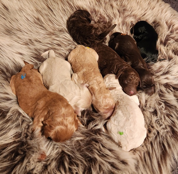 Pünktlich zum Nikolaustag hat uns Lilo 8 Welpen geschenkt. Es ist, wie erhofft, ein bunter Wurf geworden.